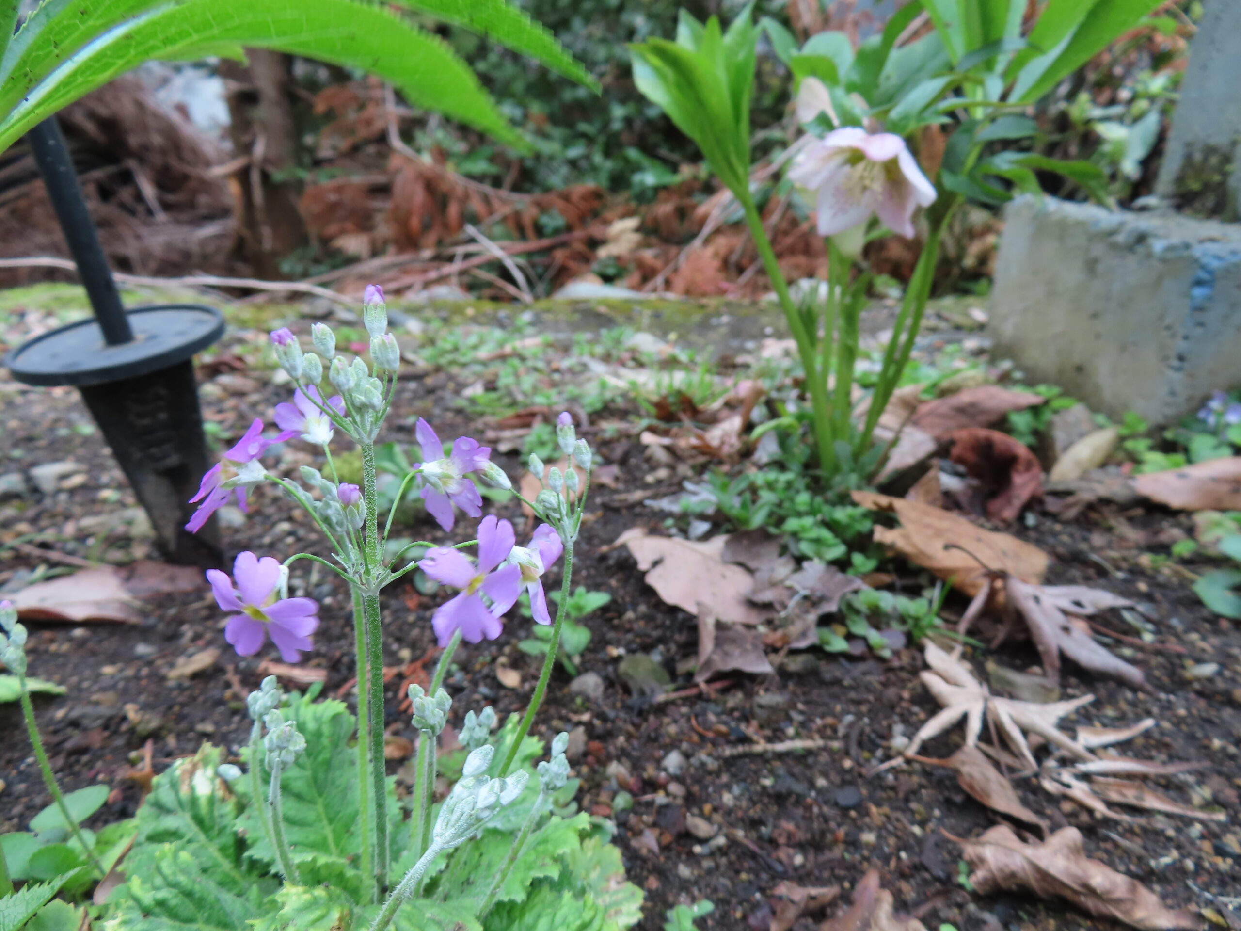 クリスマスローズとサクラソウが同じ場所に咲きました