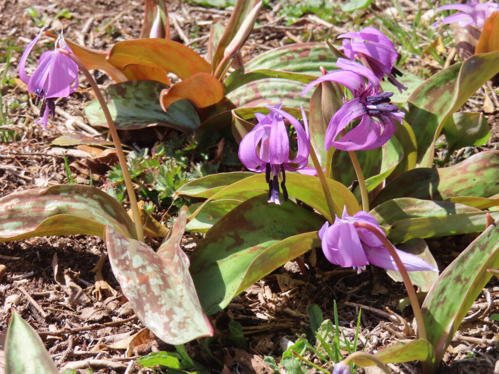 くるんと花びらを上向きにしたカタクリ