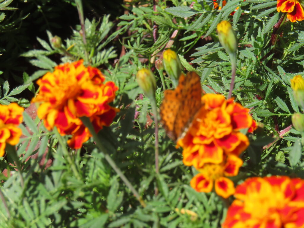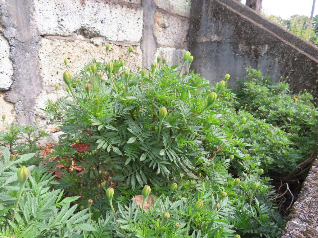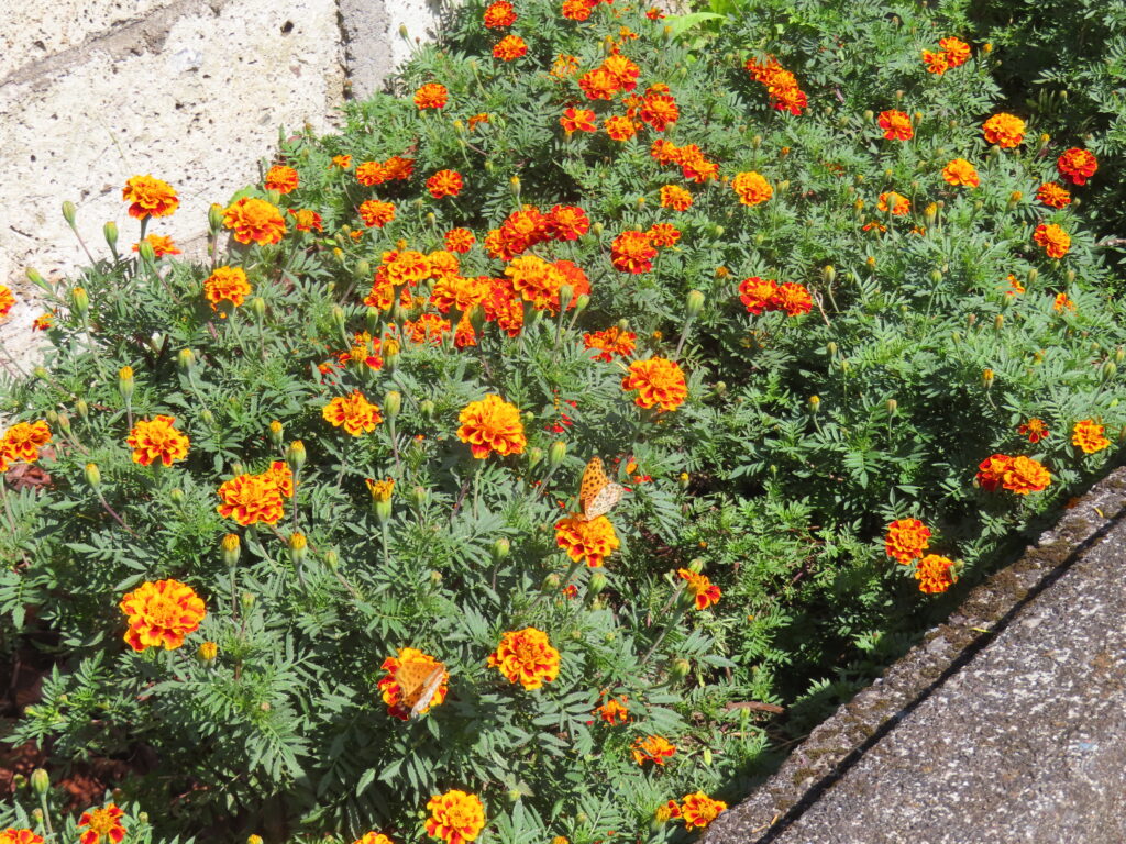 蒔いた覚えはないのだけど、マリーゴールドが満開になりました