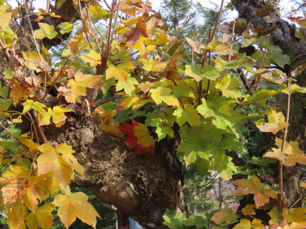 赤と黄と黄緑色の葉が色とりどり